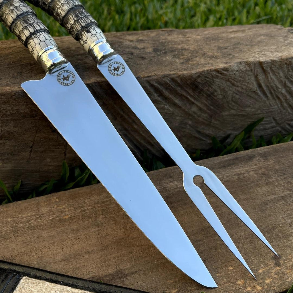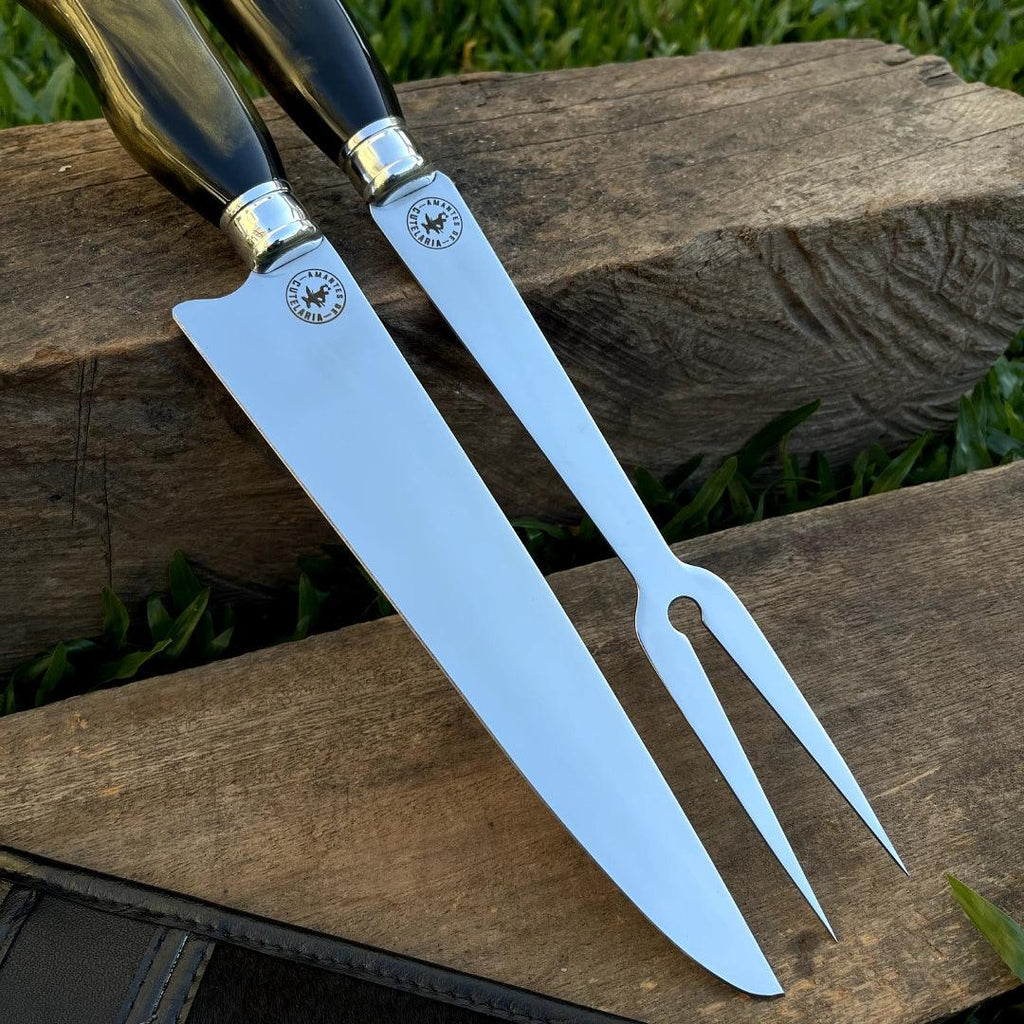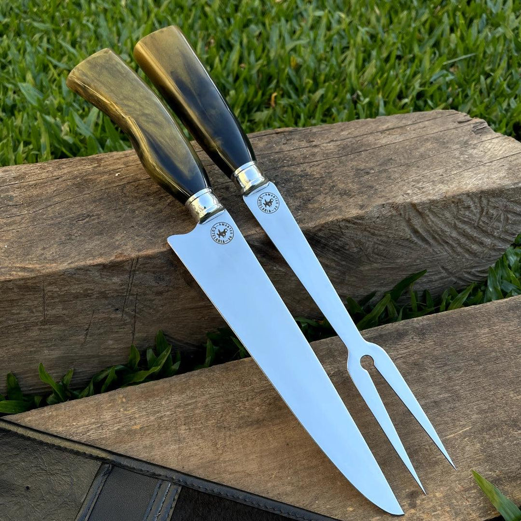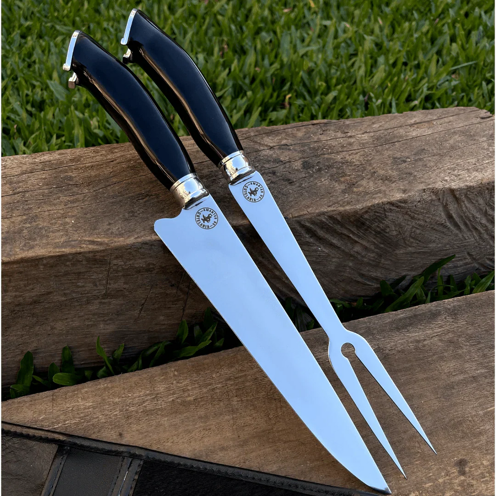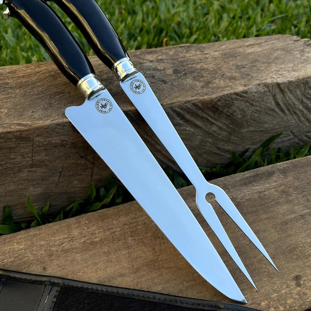 Kit Faca e Garfo Artesanal para Churrasco Personalizada | 9' polegadas