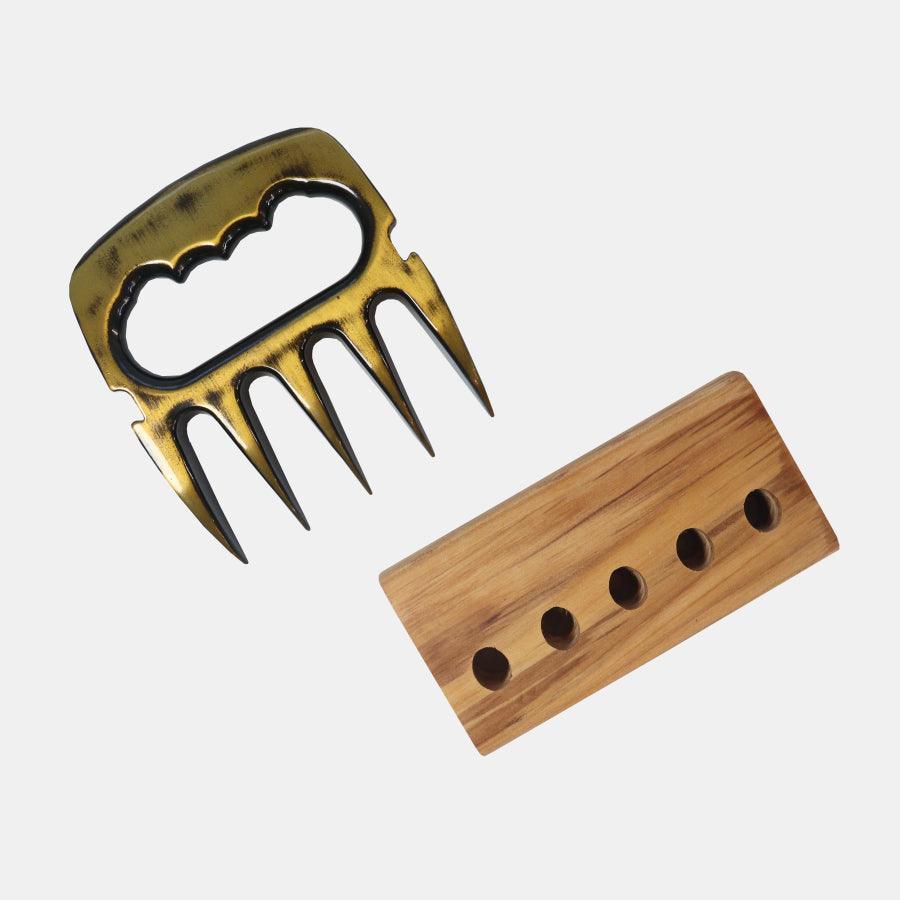 Garra de Urso Ouro Envelhecido com Base em Madeira